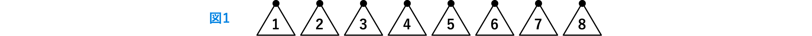 図1のように1から8までの数字が書かれている8枚の正三角形を用いて、